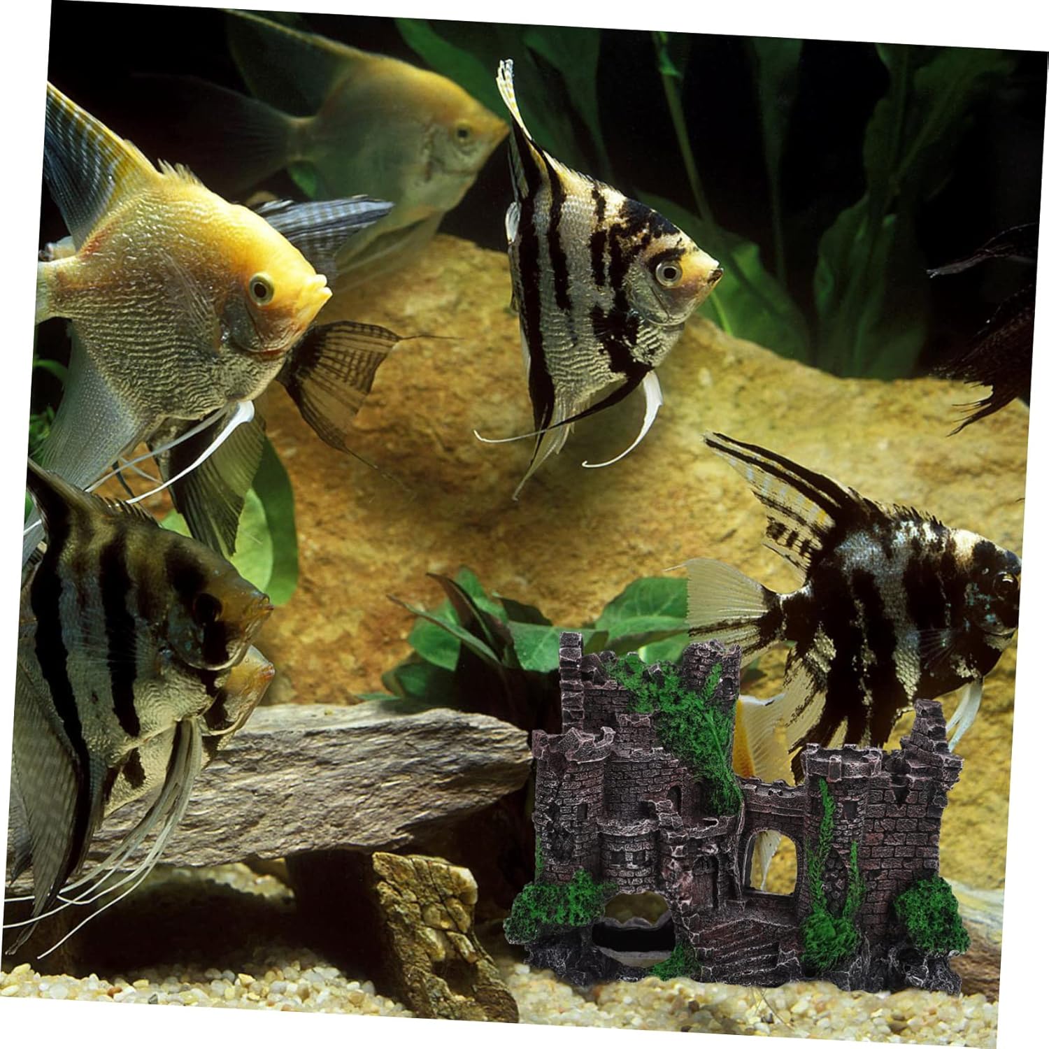 Package Include 3 x Fish Tank Ornament Characteristics -Color: As shown fish tank landscape decor -Size: 18.00X15.00X8.50cm/7.07X5.89X3 castle cave hideout. -Material: resin shrimp breeding house -The ornament is specially designed for fish tank and aquarium decoration fish tank. -The material is for fish and won't pollute water environment fish hideaway. -Adding personality and lifelike environment to the fish tank or aquarium aquarium hideout. -Easy to clean, beautiful appearance, will not scratch or harm the pet fish fish tank shelter. -This adornment is natural, there is no harm to your body or your small pets reptile decor. Goods Information large fish tank The aquarium decoration can catch your fish's eyes and provide shelter for fish and shrimp, pretty up your fish tank and make your tank look more fun and change it into a beautiful hideaway habitat, it can also be used as a container for fish or shrimp to lay eggs