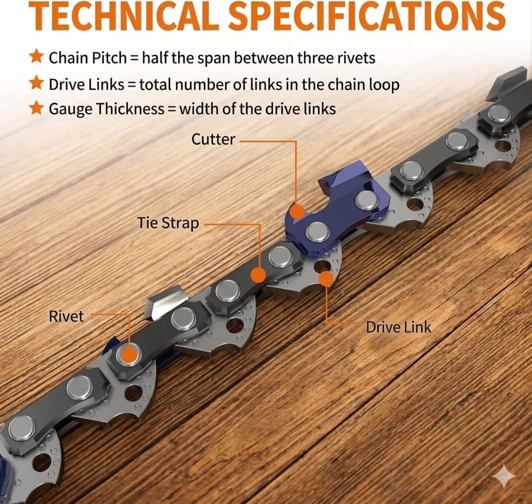 8-Inch Mini Chainsaw Chain, 1/4" LP Pitch .043" Gauge 45 Drive Links Replacement Chains for Portable Handheld Electric Chainsaws