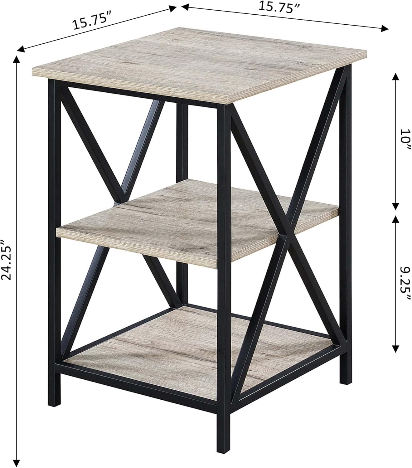 | Special Feature | Available in Multiple Finishes, Black cross metal frame, Middle and Bottom Shelf for Additional Storage |