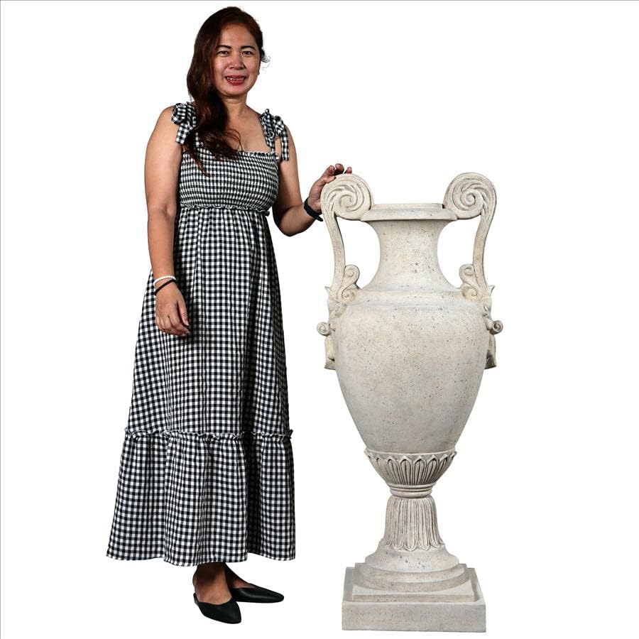 Replicating the grande designs found in the courts of European palaces, this stunning Château de Fontainebleau urn is an artistic, grande-scale architectural element. Make a grande statement on a terrace, flanking a doorway or a front gate with a pair of these wide brimmed urns cast in quality, fiberglass-reinforced designer resin with an exquisite faux limestone finish. Our unparalleled, authentic Design Toscano garden urns can be displayed alone or upon one of our garden statuary pedestals. Adorn your home and garden by bringing to mind the astounding courts of European palaces with this impressive focal piece, breathtaking filled with flowers, lush greenery or creating a magnificent seasonal display. This large-scale, display-quality garden planter transforms the entrance to any home, business or restaurant into an architectural triumph.