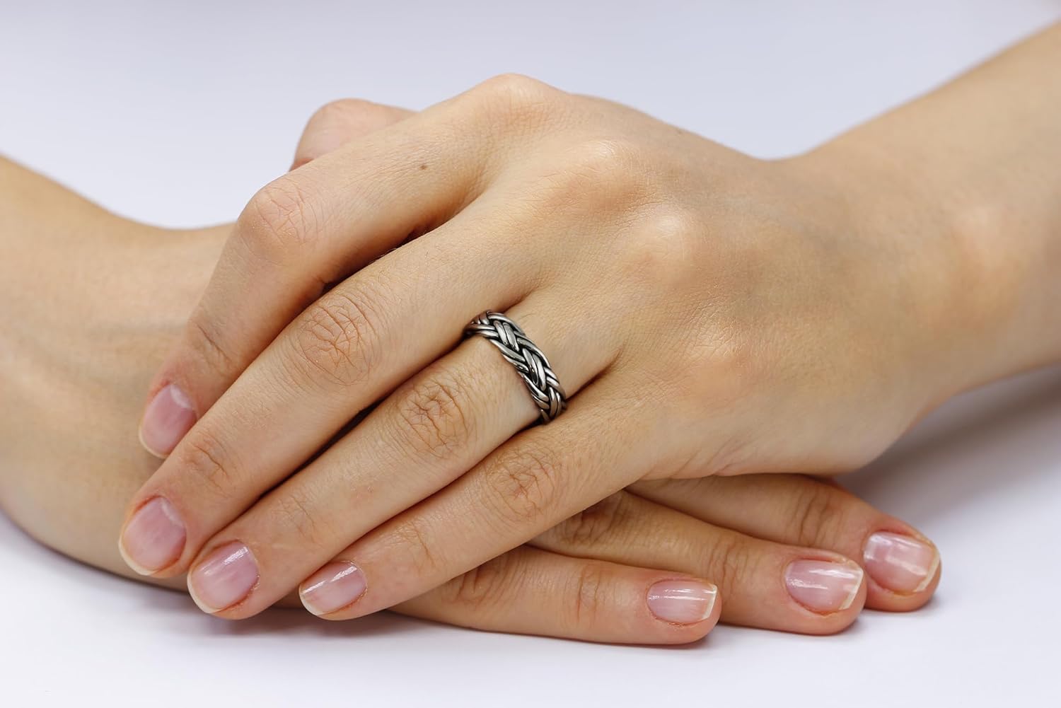 This unique braid ring is great for a man or woman. Braided ring is made of 925 Sterling Silver and stamped 925. Available in sizes 8, 9, 10, 11, 12, 13, 14, 15, 16, 17. Comfortable to wear. Dimensions: Band is 5mm wide x 3mm thick (1/4" x 1/8").